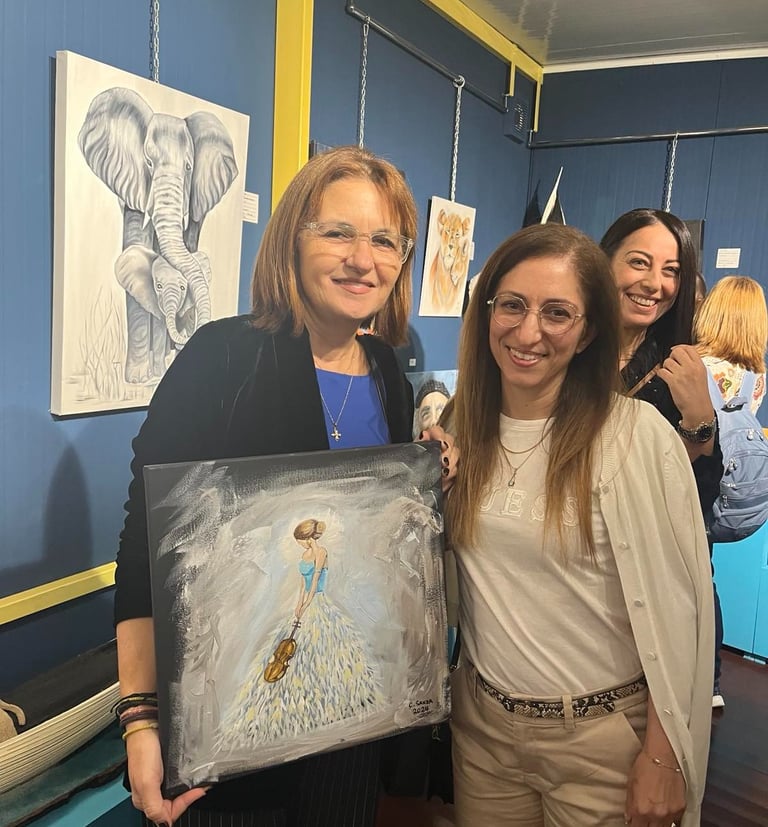 I’m Christina Stavri-Sakka, a self-taught artist born in Australia and now based in Cyprus. My work is inspired by a lifelong love of art and a deep appreciation for colour, storytelling, and community.