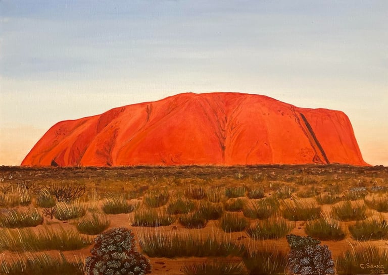 This oil painting reflects the timeless beauty of Ayers Rock, where light, land, and spirit meet in harmony